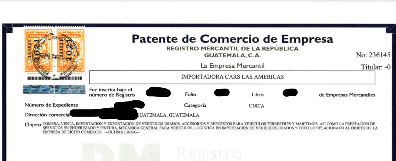 Estimados foristas solicito de su apoyo ya que me encuentro actualizando el RTU de un comerciante, quien recientemente ha registrado una Importadora de Vehículos a continuación coloco una imagen del Objeto colocado en la Patente.