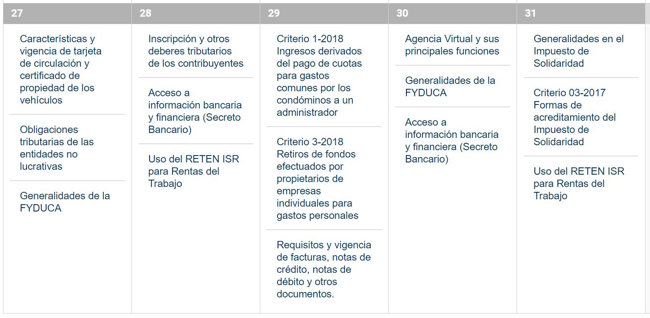 Como parte del programa permanente de capacitación presencial de la Administración Tributaria, ha publicado el calendario de eventos o capacitaciones del mes de agosto.