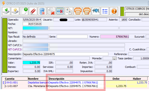 Tenemos un inconveniente a la hora de realizar cargas masivas, resulta que no nos coloca la descripción en la partida contable. ¿Podrían orientarnos a qué se deba este problema?