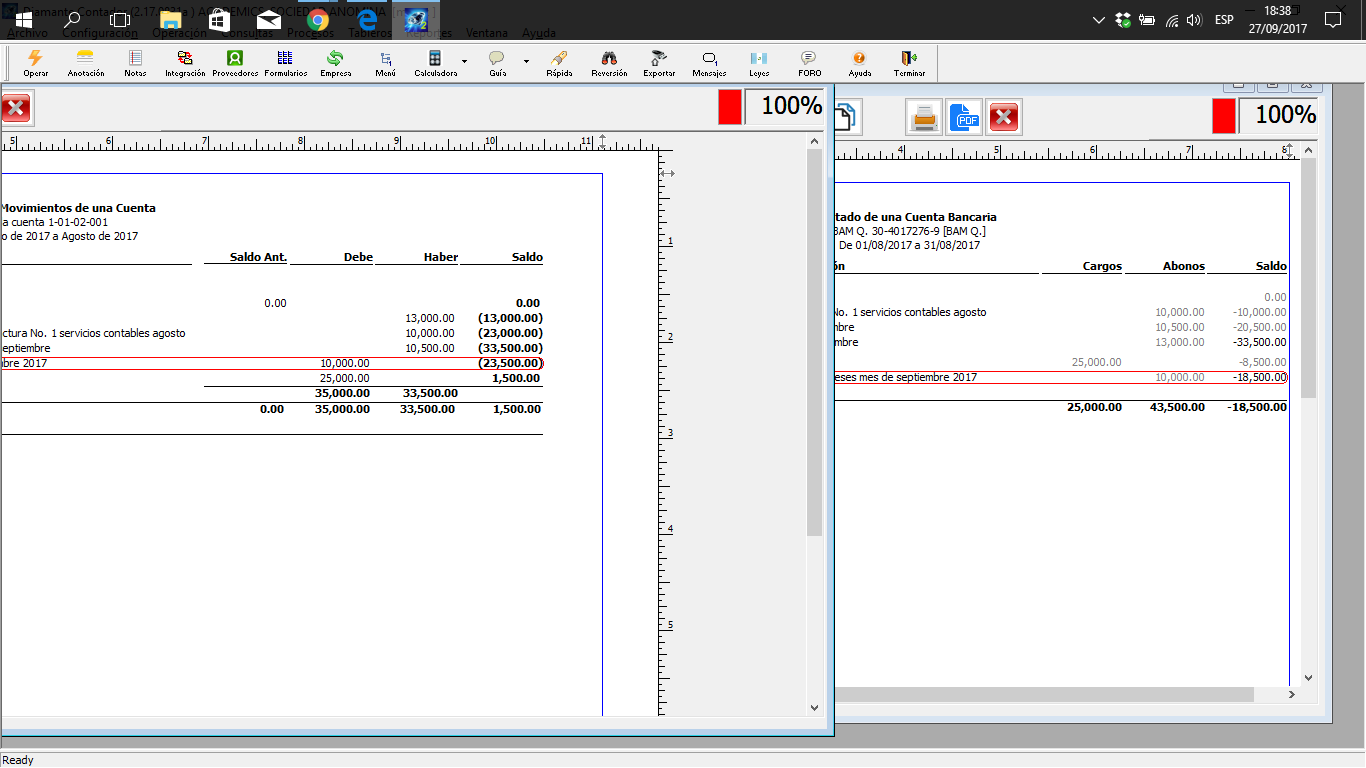 Tanto los reportes como el Estado de Situacion Financiera deberian presentar un saldo de Q 1,500.00