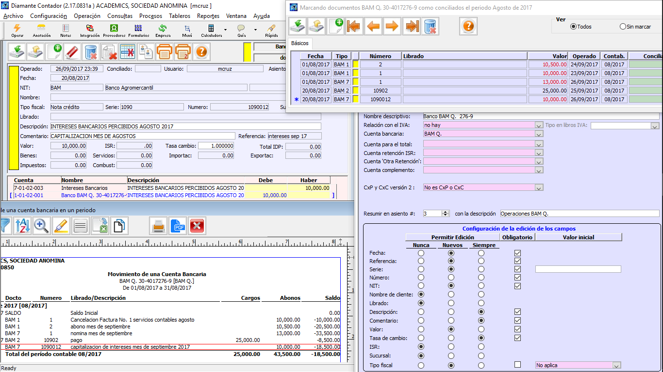 Tengo 3 módulos de Bancos en moneda nacional.