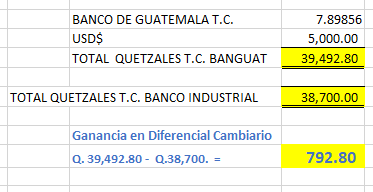 se necesitan comprar $5000 dolares a una tasa de cambio de Q7.74