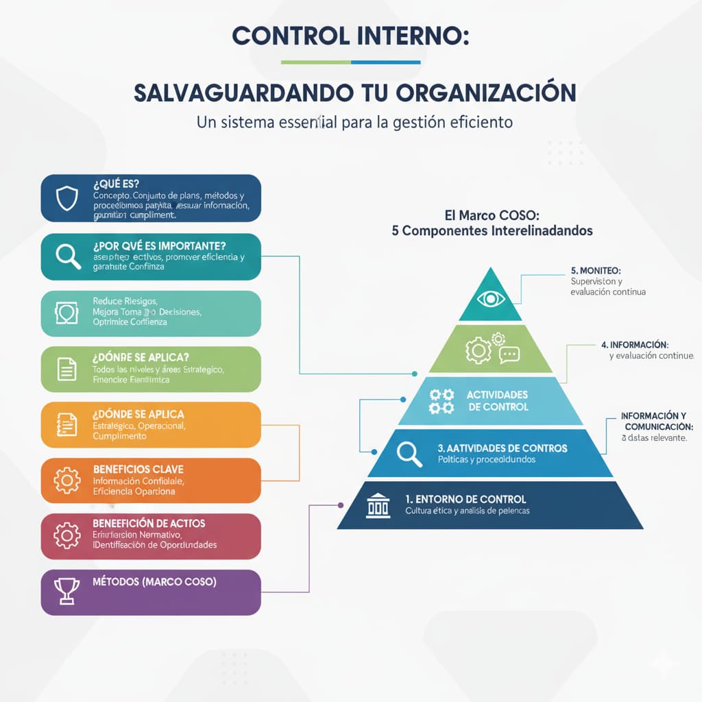 Este documento ofrece una revisión detallada del control interno, enfocándose en el marco COSO y su aplicación en los sectores público y privado, con especial atención a América Latina. Se destaca la evolución del concepto de control interno, su importancia para la buena gobernanza, la prevención de la corrupción y la eficiencia operativa. Se subraya el rol crucial de las Entidades Fiscalizadoras Superiores (EFS) en promover y evaluar el control interno, y se presenta una herramienta práctica (ICI) para este fin. Además, se exploran los desafíos y oportunidades en la implementación de estos marcos, así como el concepto de riesgo inherente a la gestión.