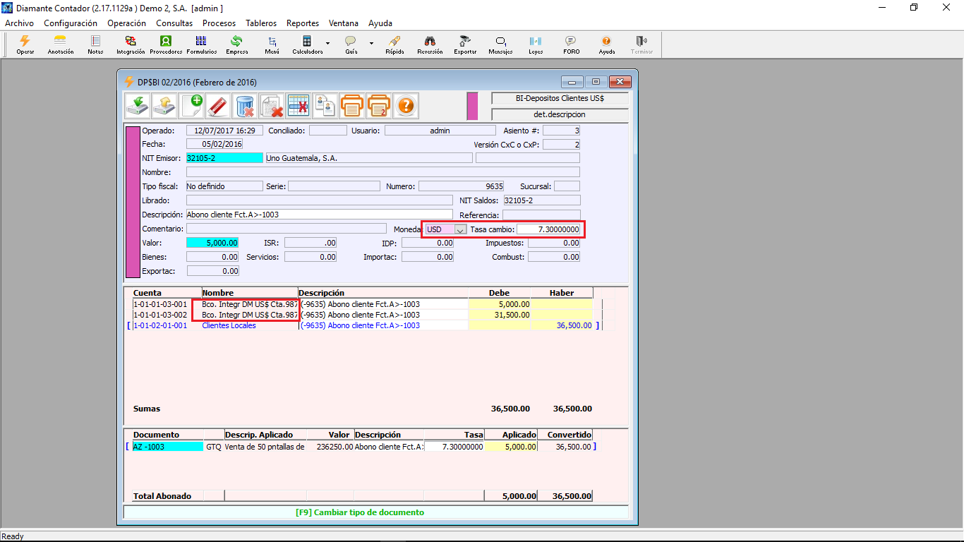 Buenos días alguien me puede ayudar estoy creando un banco que se usara para moneda extranjera pero al configurar el documento deposito y realizo la apertura ingreso el monto y el tipo de cambio pero el sistema no me hace ninguna conversión a quetzales al trasladar la información en la contabilidad el sistema puede hacer esta conversión o el tipo de cambio es solo de referencia y el estado de cuenta bancario saldría en la moneda ingresada, espero sus comentarios Gracias.