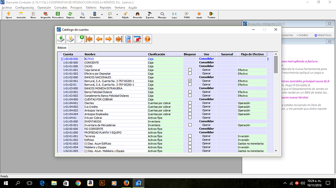 Ahí podrán observar que tengo dos cuentas de bancos, una que venía de la cuenta de DEMOS, S.A., y la otra fue creada por mi persona, ya que al hacer mi partida de jornalización, no me aparecía la cuenta.