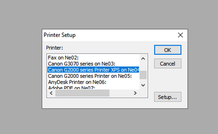 En ocasiones anteriores logré solucionar este inconveniente instalando el driver XPS, que según entiendo mejora la calidad de impresión. Con ese controlador las impresiones volvieron a realizarse con normalidad (adjunto captura de pantalla de la impresora que me funcionaba anteriormente; con la Canon G2000 normal, luego de algunos días ya no logré imprimir).