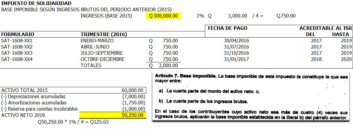 Para efectos del ISO (Literal a del artículo 11 del Decreto 73-2008), el ISO que se pago en el año 2016, se calculó sobre la base de los ingresos netos del año 2015