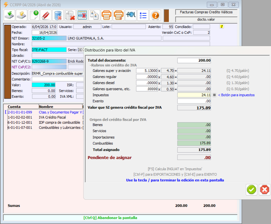 donde indica Valor, presionar F2 para sacar la siguiente pestaña y ahí colocas lo del IDP y la distrubución: