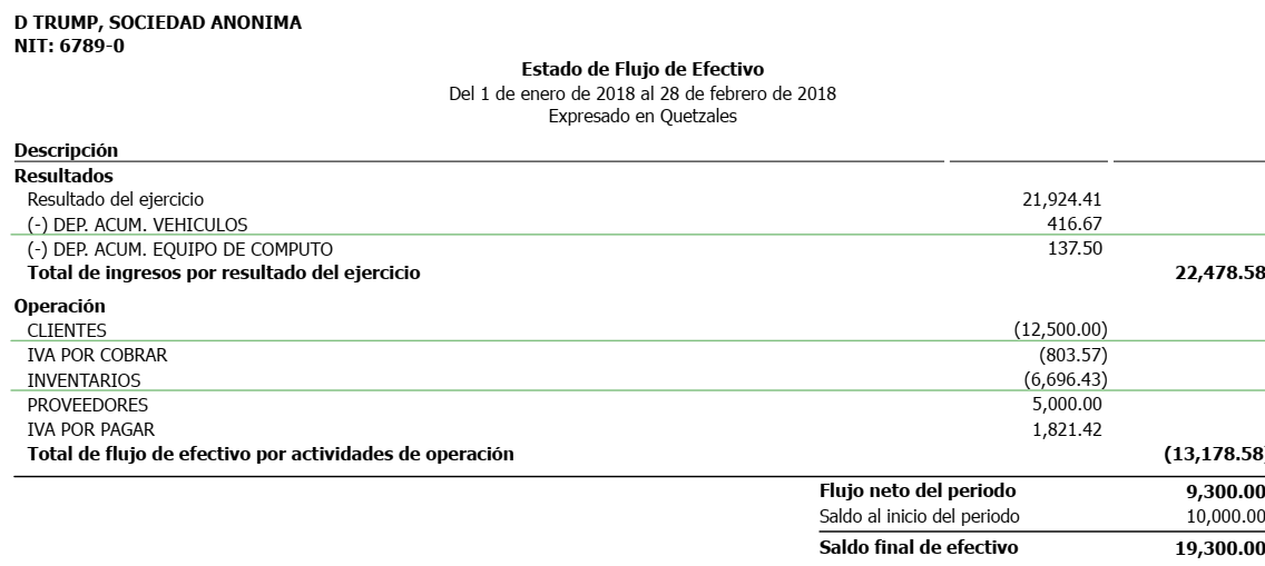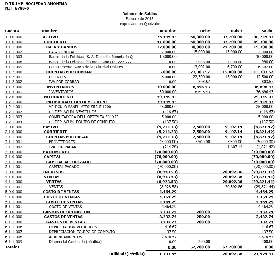 Para efectos ilustrativos, mes febrero del 2018, nuestro balance de saldos es: