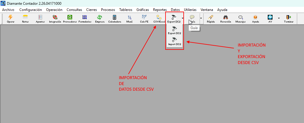 Buenos días, al actualizarla, necesitaba importar una base de datos, pero en el menú de archivo ya no aparece la función de importar los datos, ni exportar datos, ¿será que no se realizó la actualización completa? o tendré algo malo.
