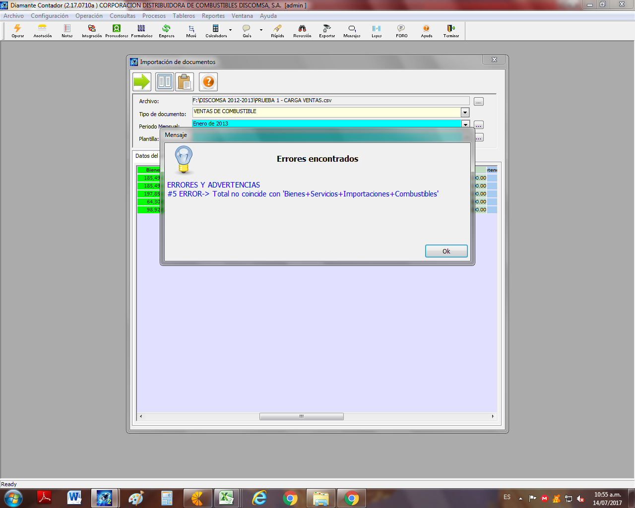 Ese error se da por no sumar las celdas en la hoja de calculo indicadas (bienes, servicios…etc).
