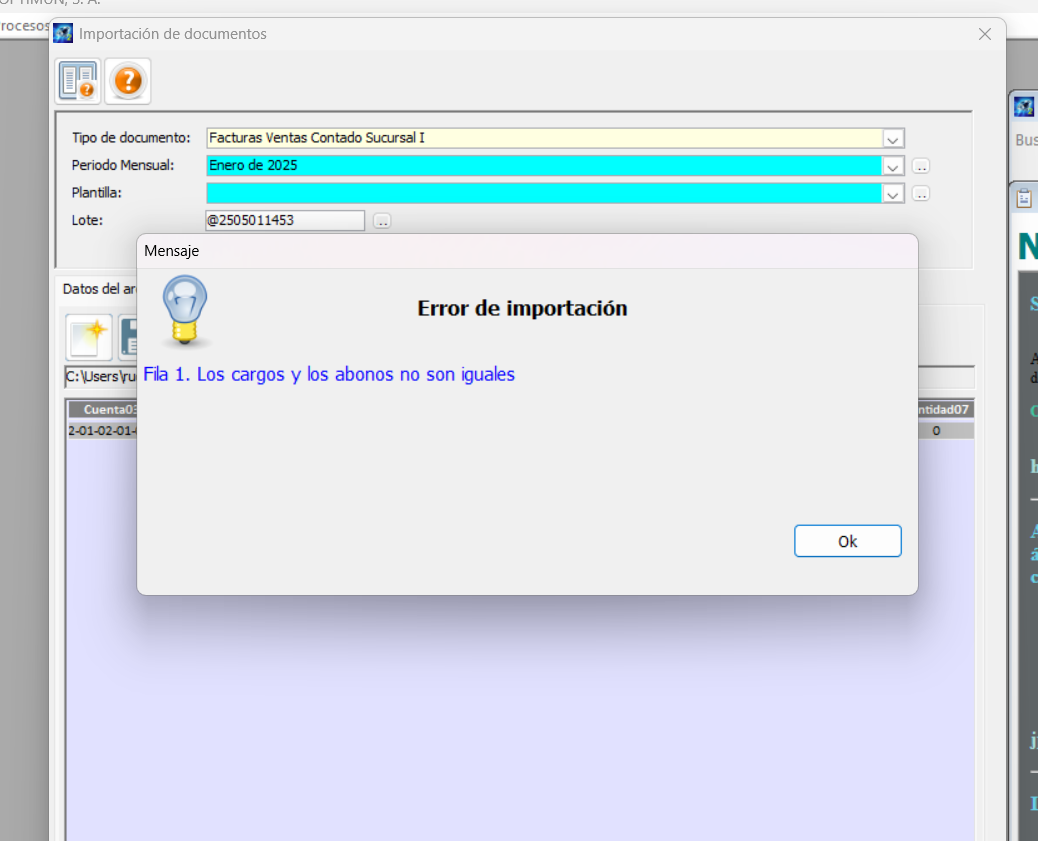 Hola @ERAMIREZ , buenas tardes, como lograste generar la partida. En mi carga coloco las cuentas y sus valores, pero me dice lo siguiente: