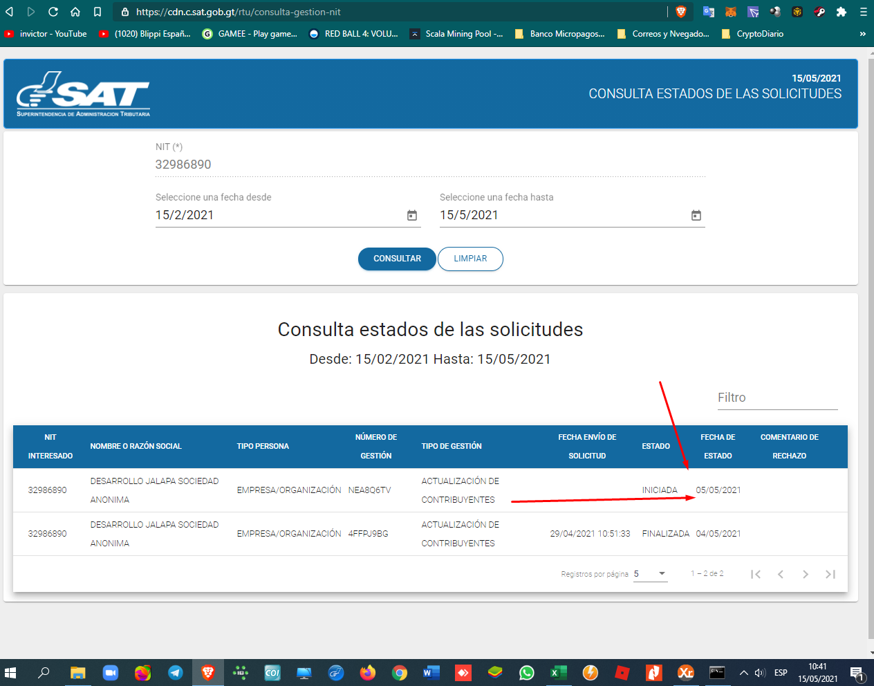 - [5].- Plazo en que se desvanece en la SAT y en Eservicios.